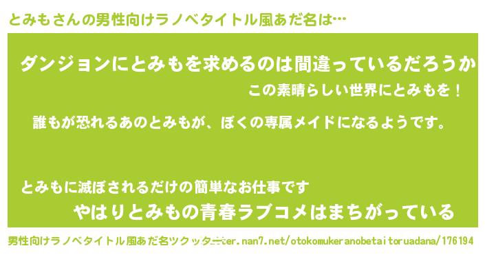 | 胡散臭い通販商品みたいなあだ名 | 『前代未聞の水素水…その名も「とみも」』 |