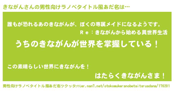 | 意味不明あだ名 | 『永久保存きながん』『自称きながん』 |