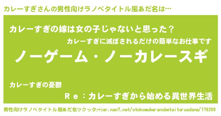 | ヒーロー風カッコイイあだ名 | 『天空の使者カレーすぎ』『幻影騎士カレ』 |