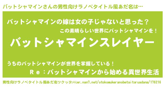 | 胡散臭い通販商品みたいなあだ名 | 『信頼と実績のネックレス…その名も「バットシャマイン」』 |
