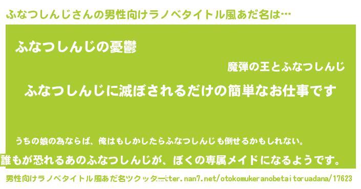 | 女子向けラノベタイトル風あだ名 | 『横柄ふなつしんじと宰相陛下』 |