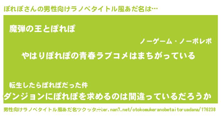 | 女子向けラノベタイトル風あだ名 | 『ぽれぽの雑貨屋さん』 |