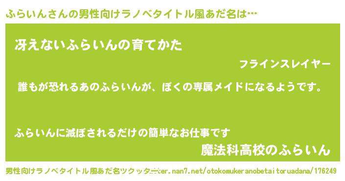 | ヘコむあだ名 | 『ふらいん(笑)』『ふらにー』 |