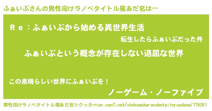 | ヘコむあだ名 | 『ふぁいぶ(小並感)』『ふぁもー』 |