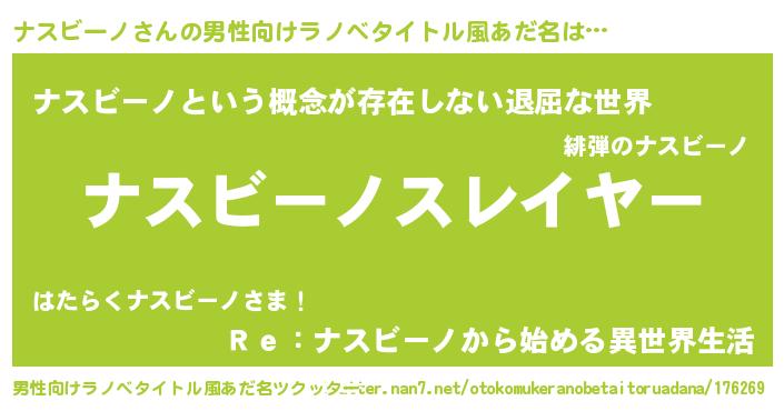 | 胡散臭い通販商品みたいなあだ名 | 『絶対に幸福をもたらす健康食品…その名も「ナスビーノ」』 |