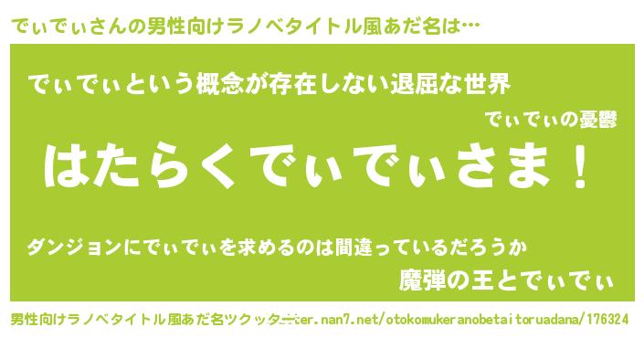 | 胡散臭い通販商品みたいなあだ名 | 『来世でも幸せになれる健康食品…その名も「でぃでぃ」』 |