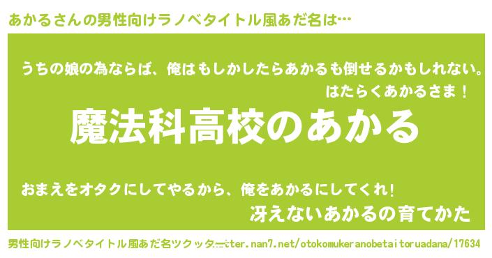 | 女子向けラノベタイトル風あだ名 | 『あかるなんてお断りですっ。』 |