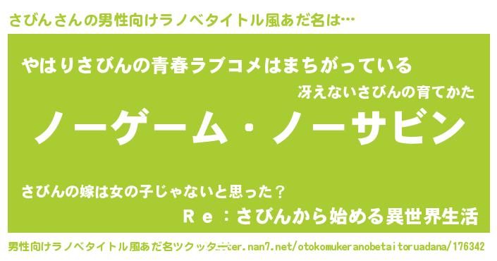 | 女子向けラノベタイトル風あだ名 | 『死神さびんの再婚』『さびん伯爵の花嫁』 |