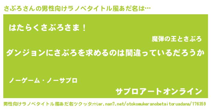| 女子向けラノベタイトル風あだ名 | 『さぶろの卵を拾いまして』 |