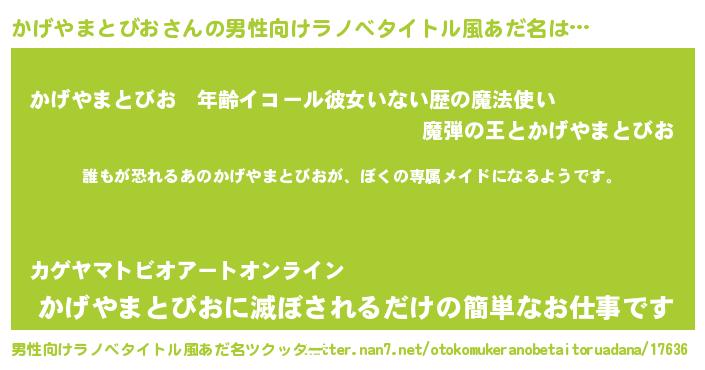 かげやまとびおさんの男性向けラノベタイトル風あだ名をツクッター!