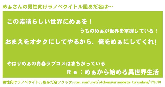 | ヒーロー風カッコイイあだ名 | 『正義の使者めぁ』『仮面メァダー』 |