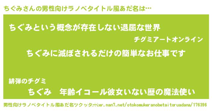 | 胡散臭い通販商品みたいなあだ名 | 『前代未聞の健康食品…その名も「ちぐみ」』 |