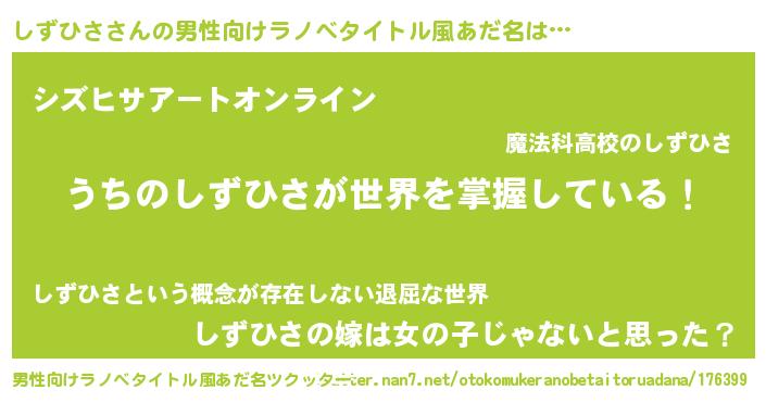 しずひささんの男性向けラノベタイトル風あだ名をツクッター!