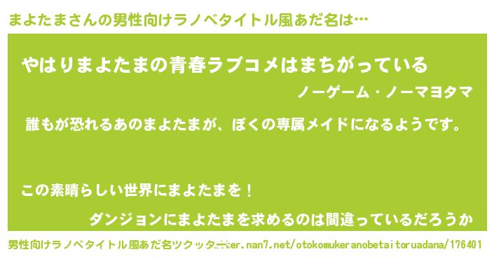 | 胡散臭い通販商品みたいなあだ名 | 『来世でも幸せになれる健康食品…その名も「まよたま」』 |