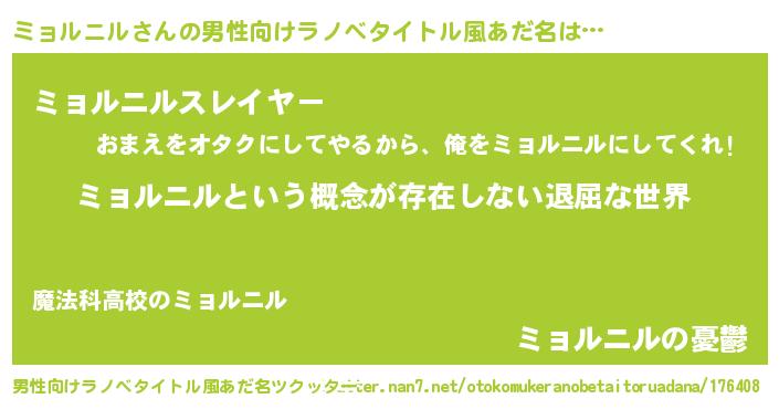 | 意味不明あだ名 | 『永久保存ミョルニル』『自称ミョルニル』 |
