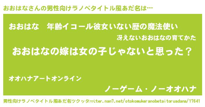 | ヒーロー風カッコイイあだ名 | 『幻影騎士オオ』『慈愛の使者おおはな』 |