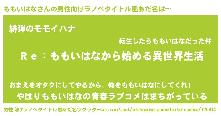 | 女子向けラノベタイトル風あだ名 | 『闇のももいはな』 |