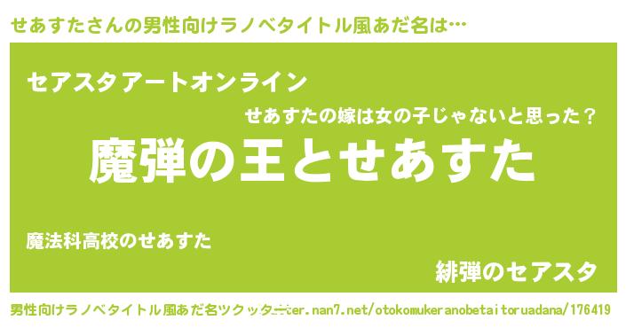 | 胡散臭い通販商品みたいなあだ名 | 『世界中を虜にした世界で10本だけ現存している希少なブランデー…その名も「せあすた」』 |