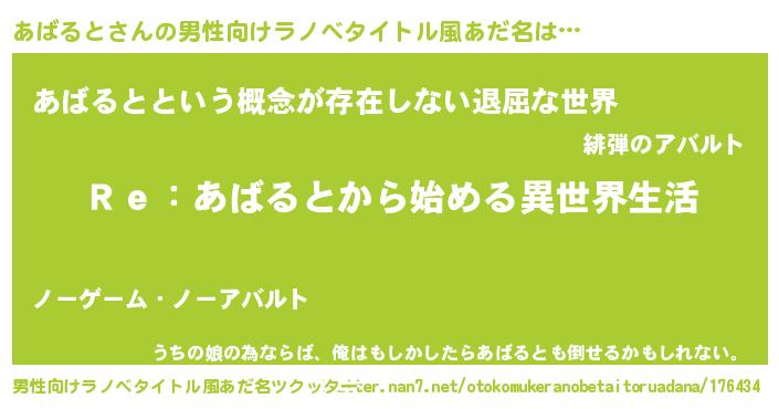 | 意味不明あだ名 | 『自称あばると』『永久保存あばると』 |