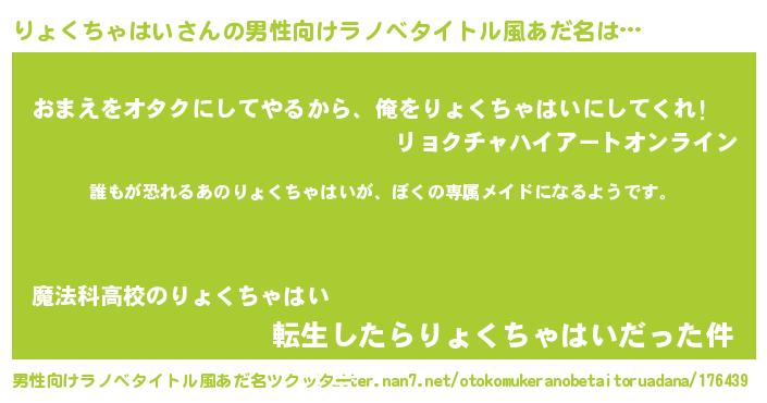 | ヘコむあだ名 | 『りょくちゃはい(笑)』『りょふぇ~』 |