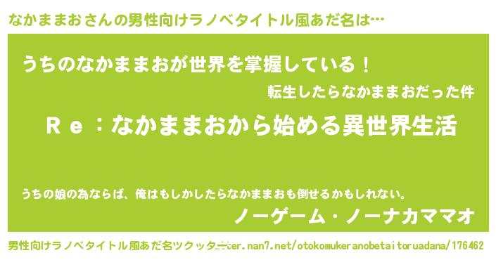 | 意味不明あだ名 | 『自称なかままお』『永久保存なかままお』 |