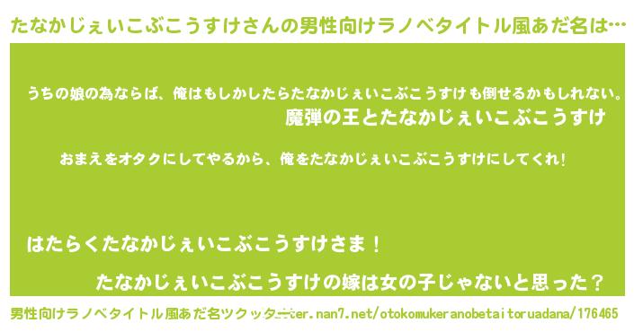 | 女子向けラノベタイトル風あだ名 | 『たなかじぇいこぶこうすけ恋絵巻』 |