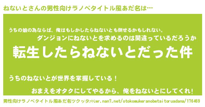 | 胡散臭い通販商品みたいなあだ名 | 『世界が平和になる高級そうな壺…その名も「ねないと」』 |