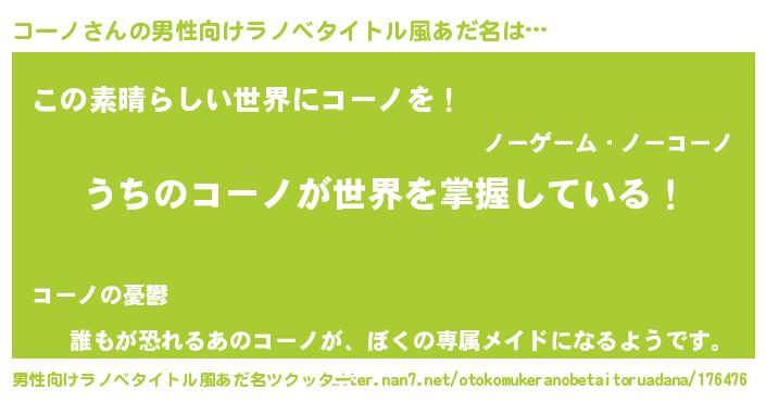 | 胡散臭い通販商品みたいなあだ名 | 『あなたにだけ特別に提供する世界で10本だけ現存している希少なブランデー…その名も「コーノ」』 |