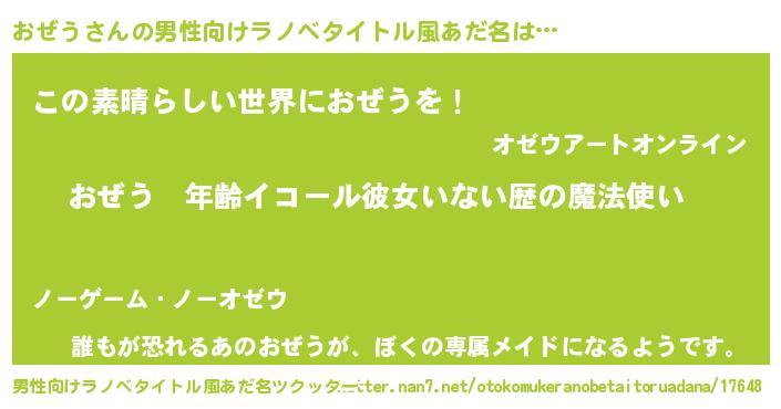| 女子向けラノベタイトル風あだ名 | 『おぜうの玉の輿計画!』『おぜう恋絵巻』 |