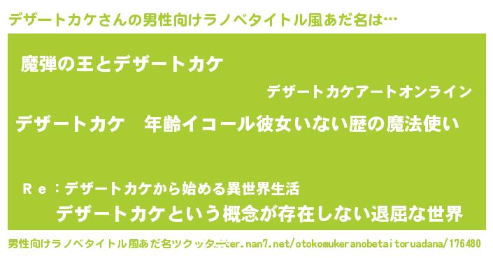 | 女子向けラノベタイトル風あだ名 | 『デザートカケの玉の輿計画!』 |