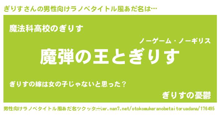 | 意味不明あだ名 | 『住所不定無職ぎりす(81歳)』『自称ぎりす』 |