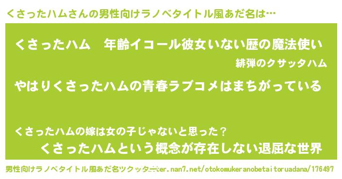 | ヒーロー風カッコイイあだ名 | 『ウルトラくさったハムマン』 |