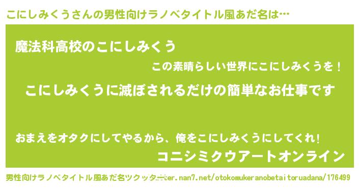 | 胡散臭い通販商品みたいなあだ名 | 『テレビで話題のアガリクス…その名も「こにしみくう」』 |
