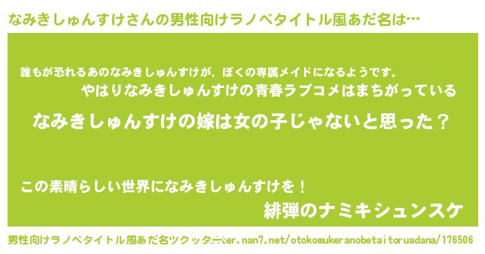 | 女子向けラノベタイトル風あだ名 | 『なみきしゅんすけの卵を拾いまして』 |