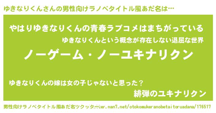 | 女子向けラノベタイトル風あだ名 | 『ゆきなりくん恋絵巻』 |