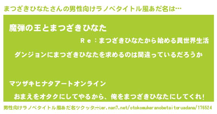 | 胡散臭い通販商品みたいなあだ名 | 『信頼と実績のペンダント…その名も「まつざきひなた」』 |