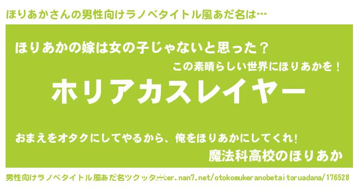 | 胡散臭い通販商品みたいなあだ名 | 『信頼と実績のペンダント…その名も「ほりあか」』 |