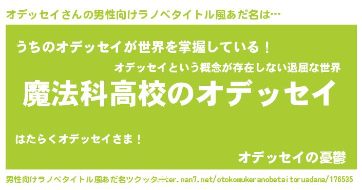 | 女子向けラノベタイトル風あだ名 | 『オデッセイなんてお断りですっ。』 |