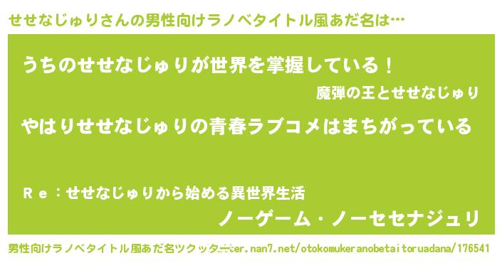 | 女子向けラノベタイトル風あだ名 | 『せせなじゅりの雑貨屋さん』 |