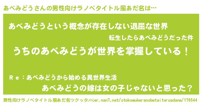 | 胡散臭い通販商品みたいなあだ名 | 『前代未聞の健康食品…その名も「あべみどう」』 |