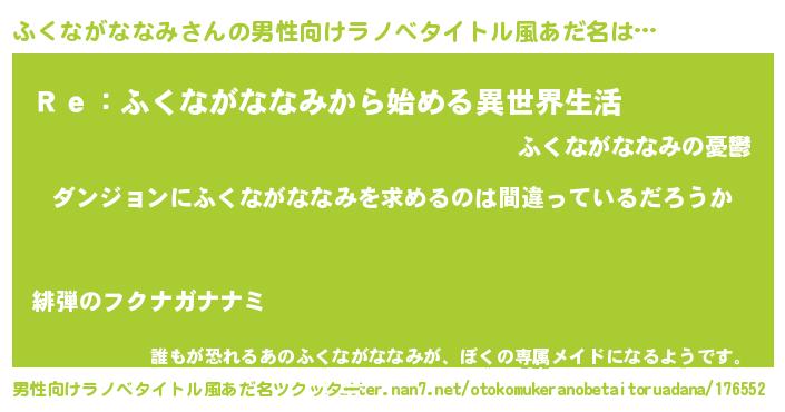 | 女子向けラノベタイトル風あだ名 | 『ふくながななみは平凡を望む』 |