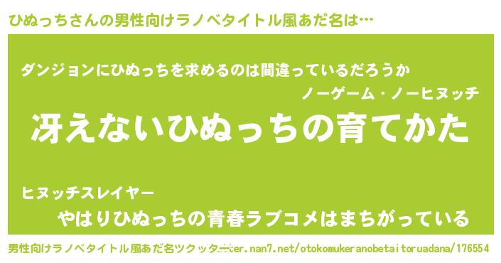| 女子向けラノベタイトル風あだ名 | 『シンデレラひぬっち家の靴箱館』 |