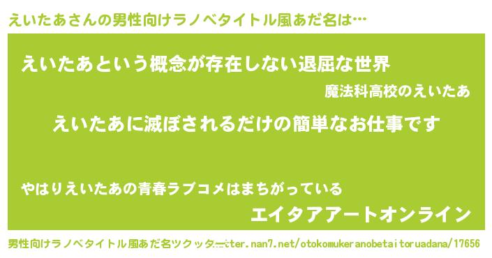 | 伝説のあだ名 | 『古より伝わる吟遊詩人えいたあ』 |