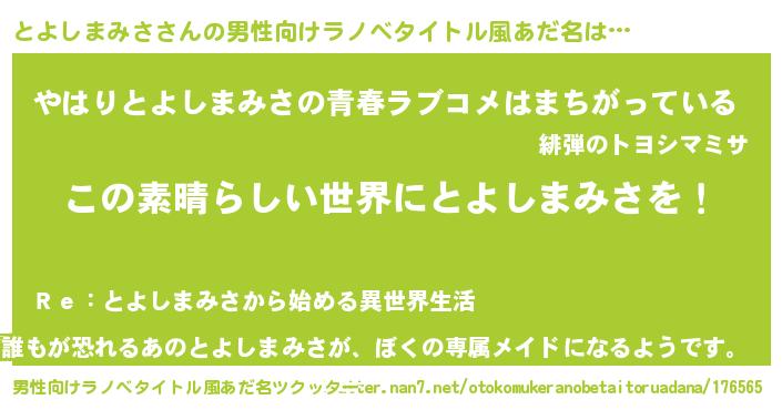 | 意味不明あだ名 | 『住所不定無職とよしまみさ(74歳)』 |