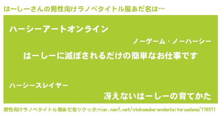 | 胡散臭い通販商品みたいなあだ名 | 『億万長者になれるブレスレット…その名も「はーしー」』 |