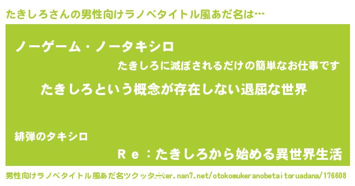 | 胡散臭い通販商品みたいなあだ名 | 『絶対に幸福をもたらす健康食品…その名も「たきしろ」』 |