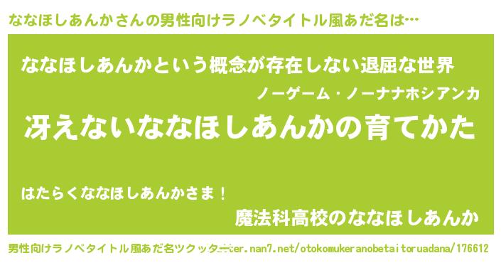| 意味不明あだ名 | 『永久保存ななほしあんか』 |