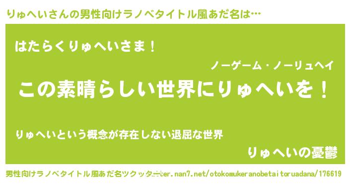 | 女子向けラノベタイトル風あだ名 | 『乙女ゲームの破滅フラグしかない悪役りゅへいに転生してしまった…』 |
