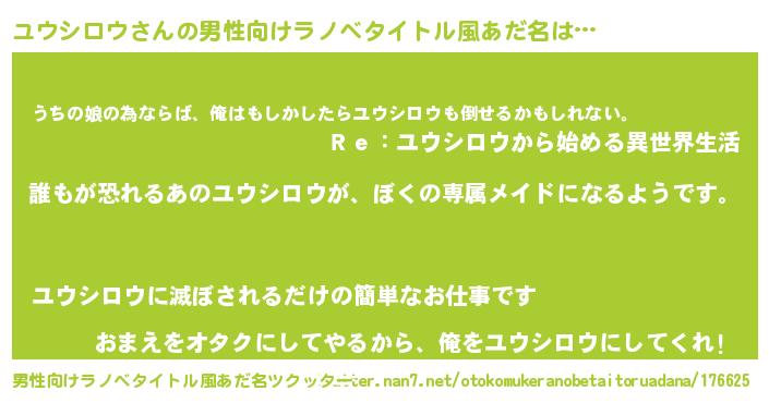 | 女子向けラノベタイトル風あだ名 | 『異世界でカフェユウシロウを開店しました。』 |