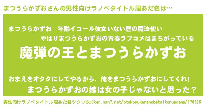 | 伝説のあだ名 | 『孤高の遊び人まつうらかずお』 |